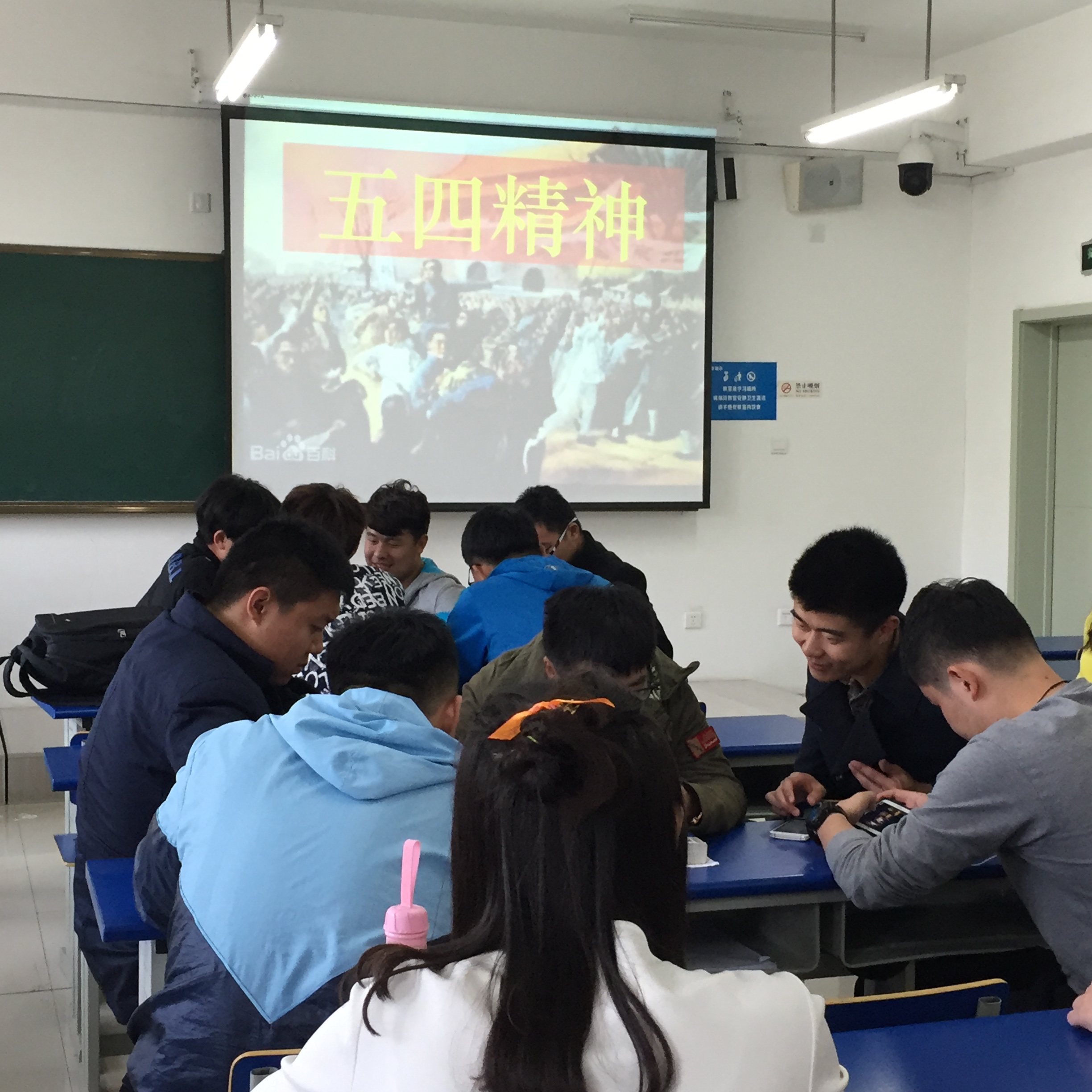 首先,15级党员彭梦月同学与同学们分享了自己对五四精神的理解,并阐述了五四运动的历史和现实精神。随后,同学们就自己的观点展开了激烈的小组讨论。最后,支部组织集体观赏了抗日红色电影《百团大战》。