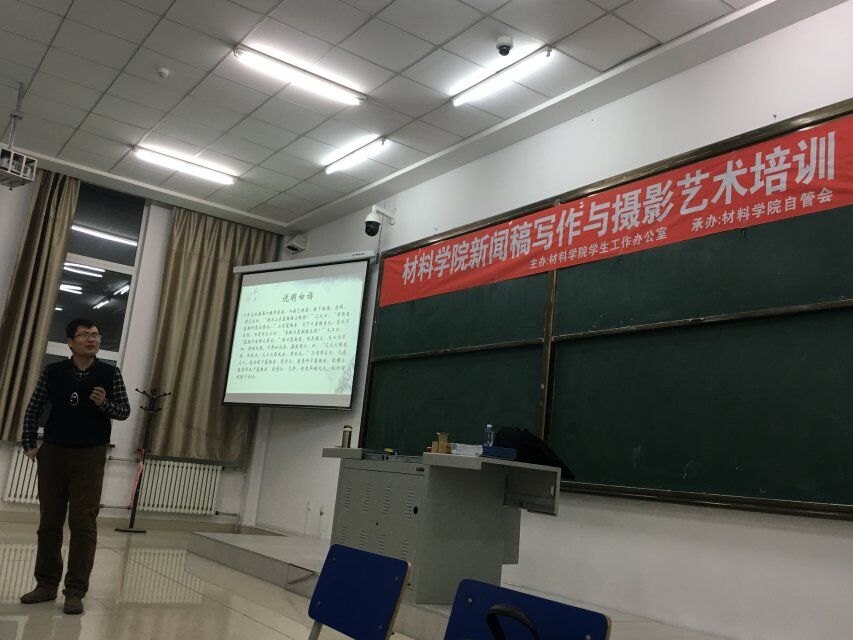 党委组织部张璐老师主讲。张璐从新闻学专业基本知识和特点出发,向同学们讲述了通讯稿写作、摄影和ppt制作的技巧;围绕新媒体宣传工作的开展谈了个人看法;结合自身经历分享了担任学生干部和从事宣传工作的心得体会;并向同学们提出了说明白话、看明白事、做明白人的希望。张璐的演讲生动幽默而又发人深省,让同学们在欢乐中收获颇丰。