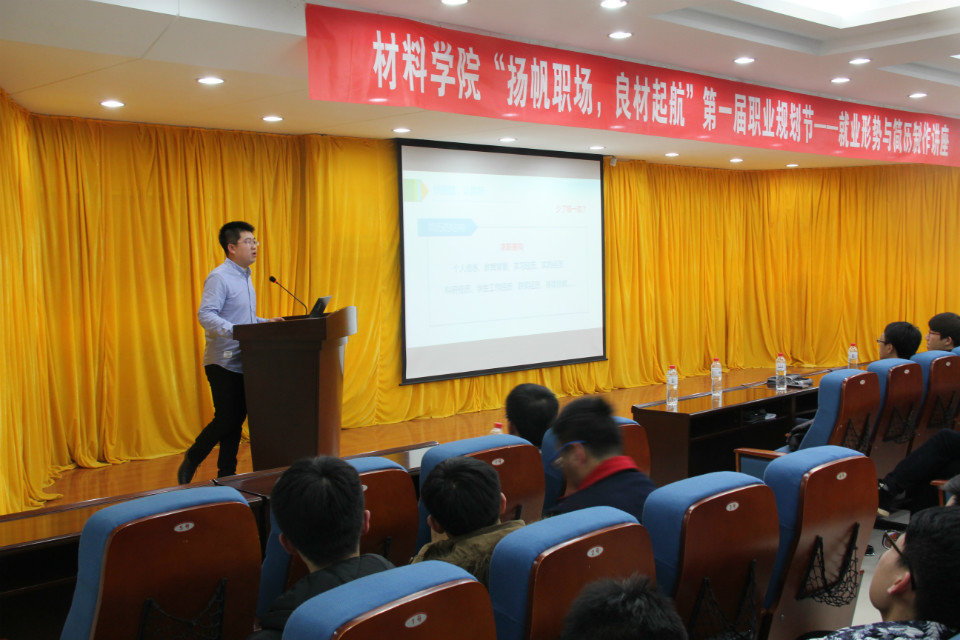 学生工作办公室主办、学生自管会承办的第一届职业规划节系列之“就业形势与简历制作”讲座在知行楼634举办,本次讲座邀请到了学生指导服务中心职业发展指导中心主任田冠仁老师和于浩老师主讲,大四辅导员张维老师也出席了本次讲座。