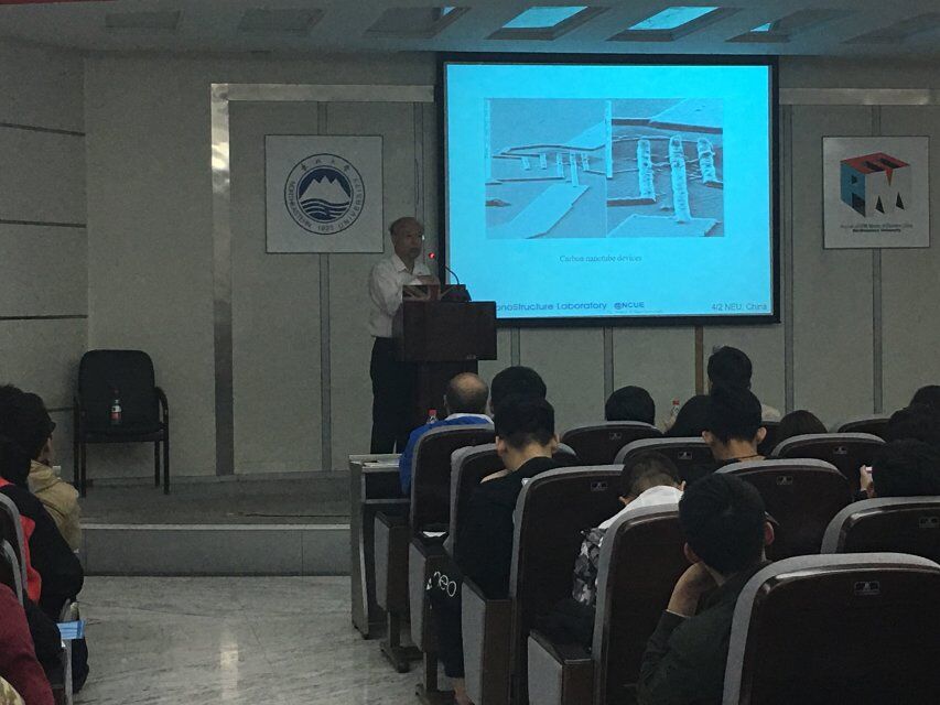两位教授介绍了近期在国际磁性材料研究领域的新趋势及新动态,并展示了他们科研团队最近的研究成果,包括:纳米级坡莫合金线的制备方法及其磁畴钉扎及移动的表征手段和最新的纳米级电子隧道效应器件设计和制备。并与参会师生进行了充分的交流。会后,洪連輝教授和吳仲卿教授与91短视频