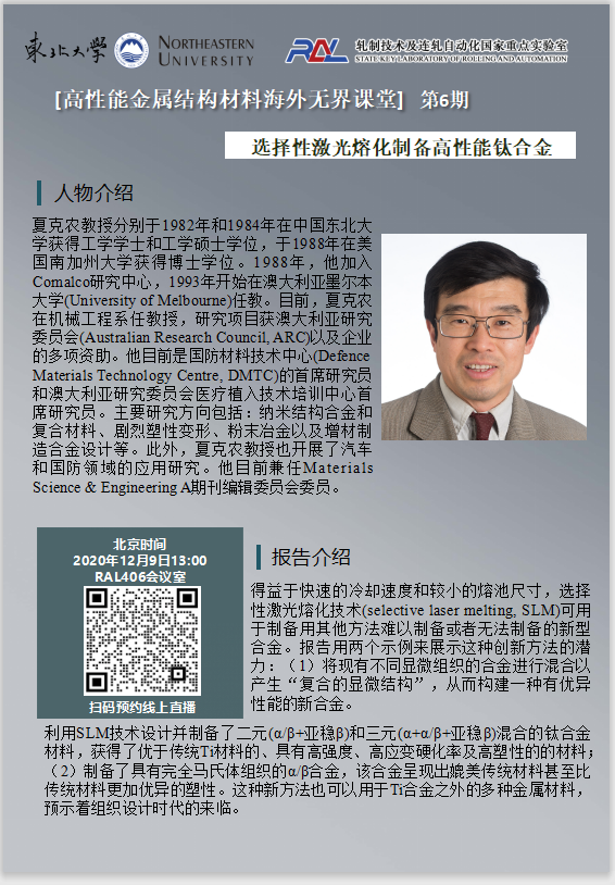 高性能金属结构材料研究进展海外无界课堂——系列学术讲座6