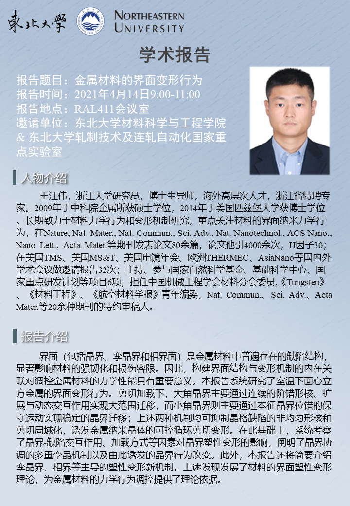 金属材料的界面变形行为——学术报告