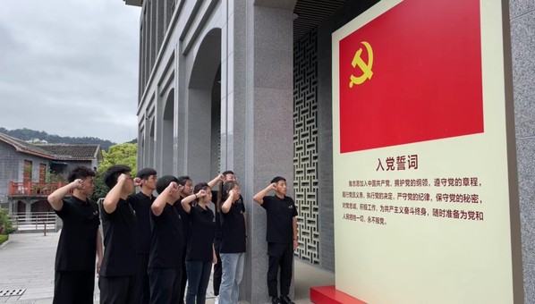 活动伊始,实践团在讲解员的带领下参观了遵义会议会址和遵义会议陈列馆,聆听红军在漫漫长征路上所经受的各种考验,深入回顾党的奋斗历程,共同感受老一辈革命家崇高的革命信念。大家纷纷表示对长征精神和遵义会议的伟大历史意义有了更深入的认识,对革命先烈坚定的理想信念充满了敬佩。随后,实践团成员在遵义会议会址楼前,面向鲜艳的党旗,庄严举起右拳,重温入党誓词,再次回顾入党时的庄严承诺和坚定决心,接受革命信念的洗礼,牢记共产党员的初心和使命。董磊表示,希望同学们运用好遵义会议历史经验,从遵义会议精神中深刻感悟共产党人的初心和使命,从中国共产党人精神谱系中汲取不竭力量,让青春在全面建设社会主义现代化国家的火热实践中绽放绚丽之花。