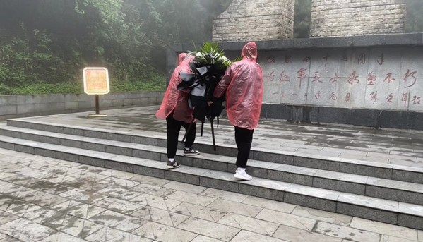 最后,实践团参观了娄山关红军战斗遗址,并在烈士纪念碑下向烈士敬献花圈,追思在娄山关战斗中牺牲的烈士。商淼表示,希望同学们在今后学习生活中始终与中国共产党同心、同向、同行,继承优良传统、传承红色基因,坚定理想信念,牢记使命担当,把学习所得内化于心、外化于行,扎实科研、不懈奋斗,以实际行动走好新时代的长征路。