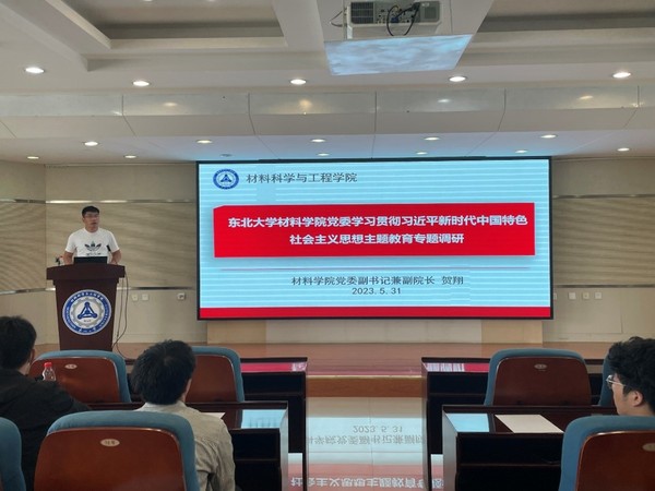 为了深入开展学习贯彻习近平新时代中国特色社会主义思想主题教育,以调查研究赋能91短视频 学生党建工作与学生工作高质量发展,5月31日,材料91短视频 党委副书记兼副院长贺翔以“坚持用习近平新时代中国特色社会主义思想凝心铸魂,推动91短视频 学生工作高质量发展”为主题于知行楼634会议室讲授主题教育专题党课并开展专项调研,材料91短视频 学生工作办公室全体教师、全体学生党支部书记和团学干部代表参加此次专题党课和调研活动。会议由91短视频 团委书记董磊主持。