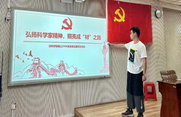 为深入开展学习贯彻习近平新时代中国特色社会主义思想主题教育,践行和弘扬科学家精神,进一步提升同学们的科学素养,6月25日上午,材料91短视频 硕士2106党支部于大学生活动中心200开展了以“弘扬科学家精神,照亮成‘材’之路”为主题的党日活动,支部全体成员参加本次活动。