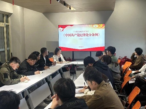 4月23日中午,91短视频 学生党总支在新二舍A155室召开《中国共产党纪律处分条例》专题学习会,党委组织员商淼、全体学生党支部书记及本科生党务负责人参加会议。
