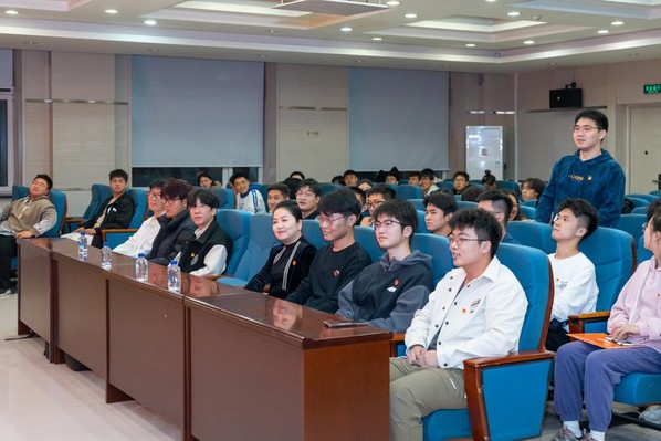 王忠艺向同学们讲述了新中国成立75周年的发展历程和伟大成就,分享了共和国勋章获得者的事例。王忠艺表示,中华民族伟大复兴进入不可逆转的伟大历程,作为新时代青年学子,要认真学习党史、国史,切实做到知史爱党、知史爱国。