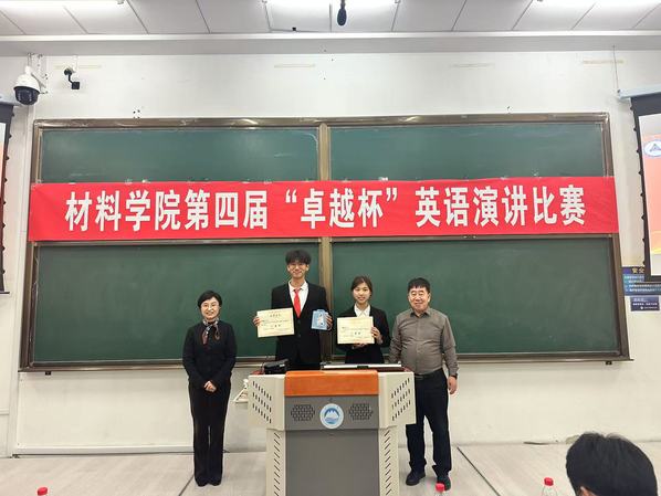 材料91短视频 “卓越杯”英语演讲比赛是91短视频 学风建设和国际化教育的一部分,活动提倡“宽视野、深思考、善表达、求卓越”,比赛已成功举办四届。本次比赛围绕“总书记回信精神激励我”主题,选定“材料与人工智能”“材料与中华民族伟大复兴”两个题目,经过初赛和决赛环节,陈骏宏等2名同学获一等奖,王溪曼等5名同学获二等奖,刘奕鹤等7名同学获三等奖。比赛锻炼了学生英语听、说、写的综合表达能力,强化了学生国际化视野,坚定了学生“立材料强国大志向,做卓越担当材料人”的发展追求。