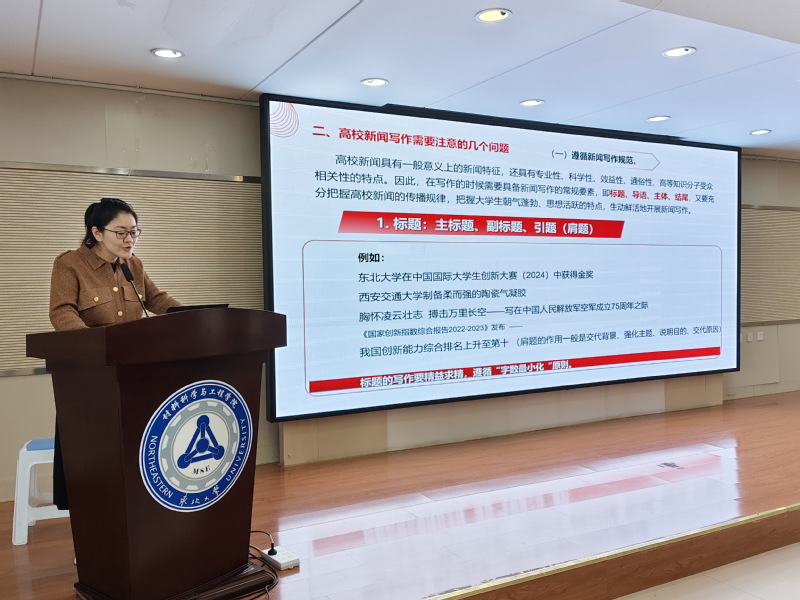 王钰慧从新闻的基本概念、重要意义、基本分类以及高校新闻写作中需要注意的问题等方面对新闻消息写作进行详细的讲解,既有深入浅出的“举案说法”,又有专业层面的理论阐释,为大家呈上一堂精彩的新闻写作课,并针对同学们稿件写作中常见的问题进行了针对性解答。