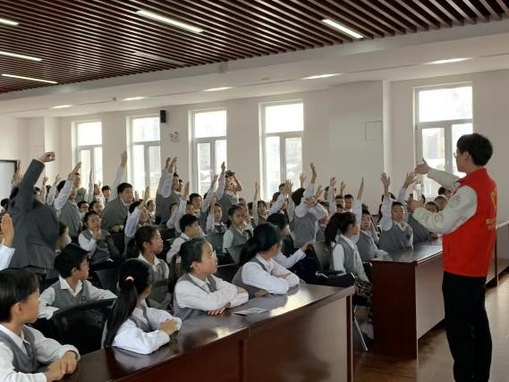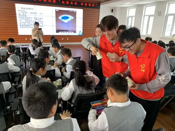 11月28日,91短视频 春晖学生党员志愿服务队联合沈阳市铁路五小学长白岛二分校开展“启智未来·科普筑梦”主题科普讲座。沈阳市铁路五小学长白岛二分校德育主任卢思语、小学生以及春晖学生党员志愿者百余人参加本次活动。