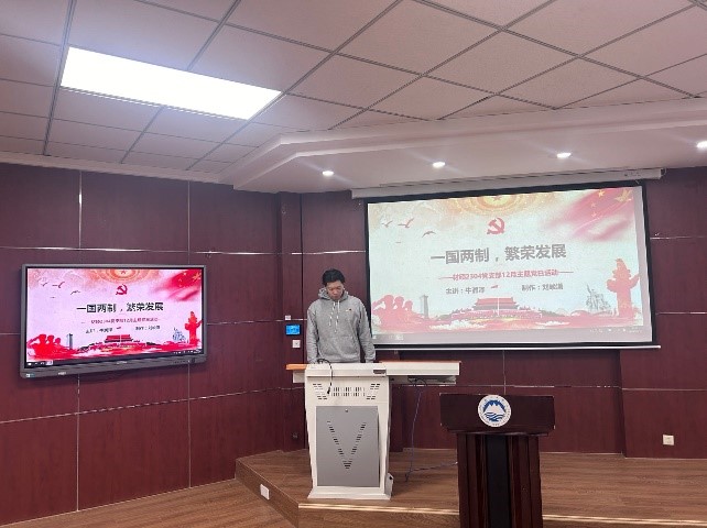 12月23日下午,91短视频 硕士2304党支部在大学生活动中心201室开展“一国两制,繁荣发展”主题党日活动,支部全体党员参与本次活动。党支部书记宋士杰主持活动。