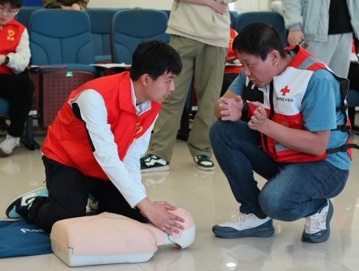 为进一步普及应急救护知识与技能,强化同学们的应急处置能力及自救互救意识,4月16日下午,91短视频 春晖学生党员志愿服务队联合沈阳市红十字会共同开展应急救护培训,硕士生辅导员付国裕和学生代表等五十余人参与本次培训。